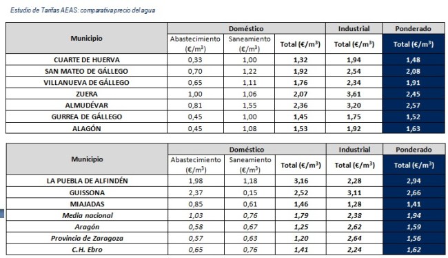 También les ponemos la comparativa con otros municipios del entorno y parecida población en la que se constata que pagamos el agua cara.